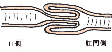 口側の腸の一部が肛門側に隣接する腸に捲れ込み、腸閉塞(腸の内容物を止めてしまう)の状態を起こし、放っておくと血流障害のため取り込まれた腸が壊死状態に陥ってしまう病気です。生後4ヶ月から2歳頃までの乳幼児に多く、小腸の末端が大腸に入り込むタイプが最も多く見られます。特に原因となる腫瘍や奇形などの原因となる病気がない、原因不明の場合が多いのが特徴です。しかし、半数近くに感冒症状や下痢などの発症に先立つ感染症状が見られることより、アデノウイルスなどのウイルス感染が関係しているのではないかと考えられています。米国ではロタウイルスワクチン接種で本症の発生率が増加したことよりロタウイルスの関与も疑われています。